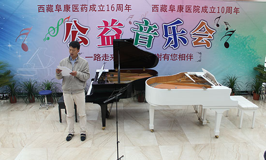 西藏阜康集團(tuán)董事長(zhǎng)王斌致詞:“阜康醫(yī)藥發(fā)展有限公司走過(guò)了十六個(gè)年頭,阜康醫(yī)院走過(guò)了十個(gè)年頭,能夠取得今天的成就,離不開(kāi)各級(jí)政府部門(mén)、社會(huì)各界友好人士長(zhǎng)期以來(lái)對(duì)阜康的關(guān)心,離不開(kāi)西藏百姓對(duì)阜康的信賴。今天很榮幸邀請(qǐng)到國(guó)外友人廣瀨清隆先生及邊天、董樂(lè)晨、周于蒨四位音樂(lè)家來(lái)到西藏為大家公益演出。一路走來(lái),阜康感謝有您相伴,衷心感謝大家,希望到場(chǎng)的朋友們盡情享受這美妙的音樂(lè)之旅。”