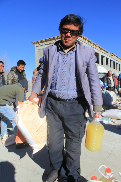 此次活動得到了社會各界的積極響應(yīng)和支持,大家紛紛為震后安置點的居民們捐獻物資。其中,拉薩香格里拉大酒店捐贈了糌粑、食用油以及一批御冬衣物,拉薩鼎業(yè)制粉有限公司捐贈面粉1800公斤,香格里拉酒店一位來自新加坡的客人捐贈了兒童保暖衣105件,并有其他社會各界愛心人士捐贈大米、酥油等若干。