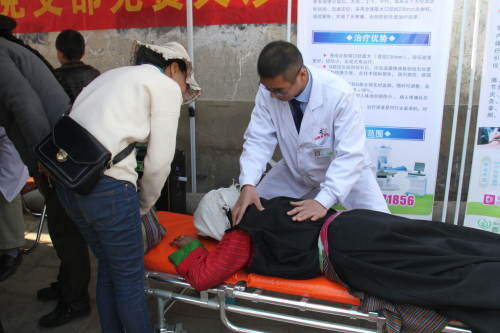 2016年4月29日上午,我院組織起一支6人醫(yī)療小隊,由黨支部書記徐勝柱主任領(lǐng)隊,其中有內(nèi)科吾金頓珠主任、針灸推拿科張洪主任,一同前往拉薩市城關(guān)區(qū)團結(jié)新村為廣大社區(qū)居民免費義診、送醫(yī)送藥。