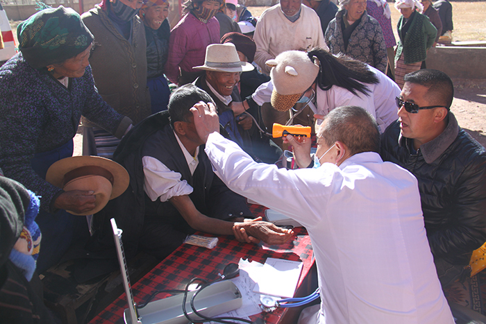 此次義診活動(dòng)由西藏阜康心腦血管醫(yī)院內(nèi)科主任唐小燕帶隊(duì),醫(yī)資力量雄厚,參加義診的有內(nèi)科、中醫(yī)科的專家和醫(yī)衛(wèi)護(hù)理人員共5人,攜帶聽診器、血壓計(jì)、小型治療儀等常用醫(yī)療器械,熱情的為患者診治、免費(fèi)送藥、解答咨詢。活動(dòng)共接待就診咨詢鄉(xiāng)民200多人次,贈(zèng)送藥品價(jià)值5000多元。義診中,發(fā)現(xiàn)前來看病的多為當(dāng)?shù)乩夏昃用?,他們因?yàn)榉N種原因不能及時(shí)去醫(yī)院做檢查和治療,通過義診為他們提出了相應(yīng)的診療建議。