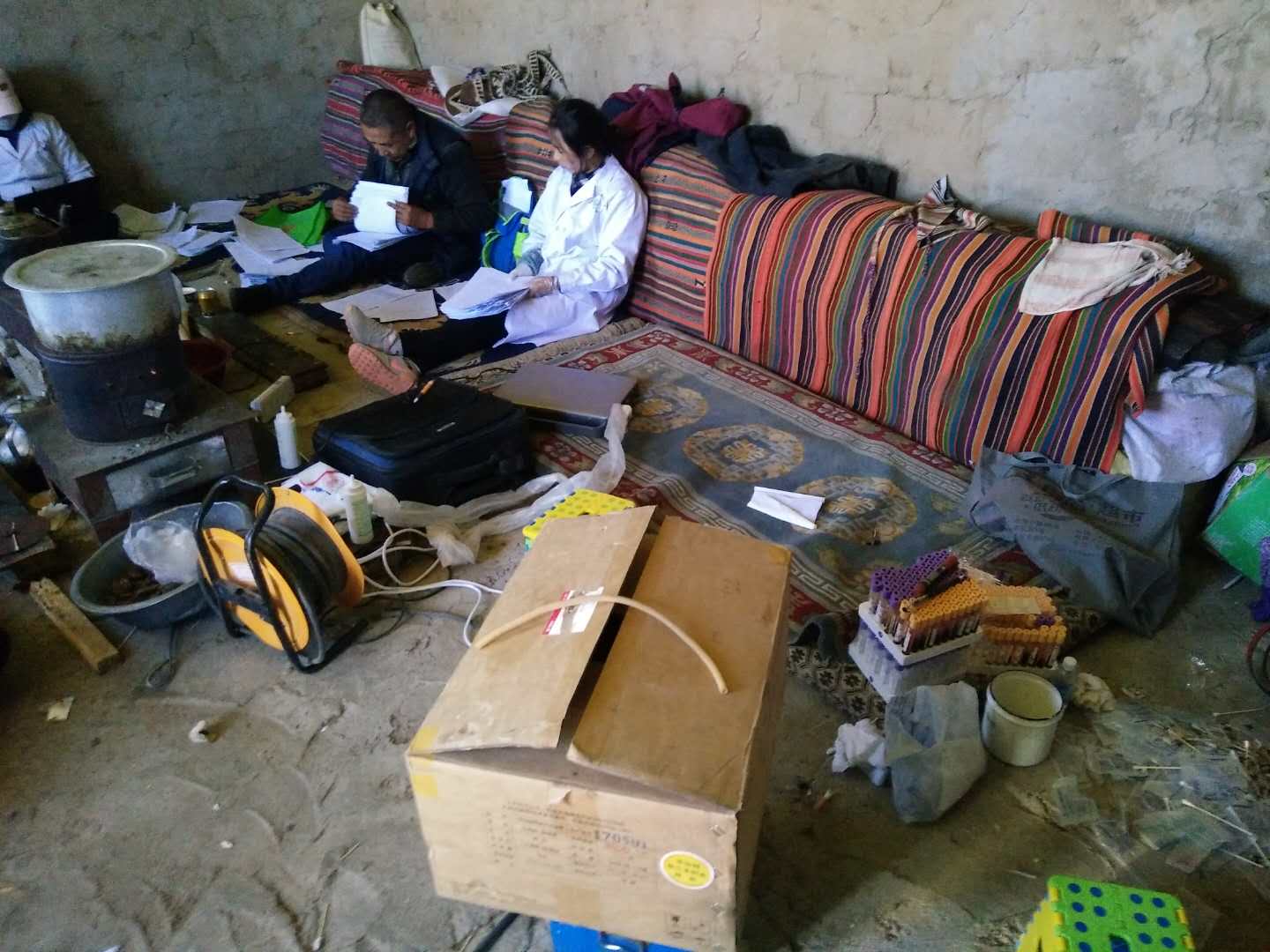 10月6日劉冬梅醫(yī)師和劉亞美護(hù)士繼續(xù)留在革吉縣篩查,格桑拉吉技師與鐘義華檢驗士一早就前往森布村,為森布村尚未檢查的牧民體檢,在結(jié)束了篩查點的工作后,我院醫(yī)療小分隊針對部分不能到現(xiàn)場的群眾,索性就背上儀器上門檢查。在醫(yī)療小分隊努力工作下,目前革吉縣篩查工作已經(jīng)進(jìn)入了掃尾階段,篩查人數(shù)也明顯減少,下一步我院醫(yī)療隊將繼續(xù)做好篩查的后續(xù)工作。