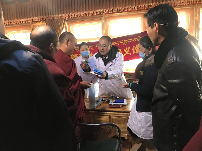 11月28日上午,西藏阜康醫(yī)院慢病管理中心義診分隊來到甘丹寺管理委員會。在文物資產(chǎn)處處長羅布次仁的接待下,我院5名醫(yī)務(wù)人員走進(jìn)了甘丹寺,義診分隊此行帶著阜康人送醫(yī)送藥的暖心活動、帶著“用知識和良知為人類健康服務(wù)”的宗旨、帶著阜康醫(yī)院幾千元的藥品,為全寺430名僧侶免費(fèi)測血壓、血糖、氧飽和度以及發(fā)放常見疾病的藥物。