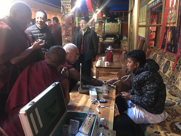 由于當(dāng)天寺廟在進(jìn)行法會活動,有部分僧侶沒有到場。義診隊共計為200多名僧侶進(jìn)行了體檢,期間得到了羅布次仁處長、索次主任的大力支持與幫助。在離開寺廟時,羅布次仁處長握著田豐輝醫(yī)生的手深切地說:“你們辛苦了!”其言雖短,但至真至切。