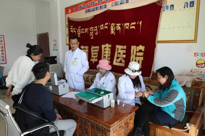 本次巡診是西藏阜康醫(yī)療黨委按照拉薩市衛(wèi)計(jì)委相關(guān)要求,自2018年9月份以來組織實(shí)施的第二次駐村工作隊(duì)定期健康巡診工作,也是2019年度第一次義務(wù)巡診。本次巡診共為200多位駐村工作隊(duì)員和當(dāng)?shù)卮?ldquo;兩委”工作人員進(jìn)行了健康義診,收集駐村工作隊(duì)體檢巡診表130多份,為駐村工作隊(duì)發(fā)放了價(jià)值12300余元的常用藥品,并根據(jù)各駐村工作隊(duì)工作環(huán)境、隊(duì)員實(shí)際身體狀況進(jìn)行了健康指導(dǎo),有效保障了廣大駐村工作隊(duì)員扎下根、撲下身,順利推進(jìn)各項(xiàng)駐村工作的正常開展。