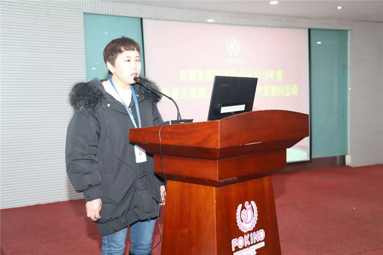 西藏阜康天使基金會秘書長吉拉帶來了阜康天使基金會創(chuàng)始人王斌、劉瀟瀟對困難員工的祝福和慰問,勉勵大家努力工作,與阜康共同進(jìn)步,在走向幸福的路上一個都不能少,并祝大家過一個幸??鞓纺?由于此次受助人員都是藏族員工,吉拉秘書長用藏語鼓勵大家積極生活、努力工作,要用一顆感恩的心回報社會。阜康天使基金會將在區(qū)黨委、政府的領(lǐng)導(dǎo)下,緊跟時代步伐,發(fā)展創(chuàng)新,爭取在助醫(yī)、助學(xué)、助困上幫助到更多的人。