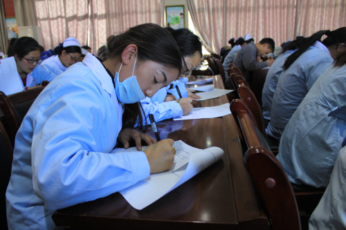 考場紀(jì)律異常嚴格,筆者也在阜康醫(yī)院婦產(chǎn)兒童分院參加了考試,員工分別以每行醫(yī)療、醫(yī)技、護理、行政交叉座次,醫(yī)療、醫(yī)技、護理、行政的考卷也各不相同。現(xiàn)場由敖德秀副院長、李君副院長、劉連福副院長監(jiān)考??荚囶}目并不難,只要認真背誦應(yīng)知應(yīng)會手冊都是能夠輕松應(yīng)答的。但是,好多同事并沒有認真學(xué)習(xí)應(yīng)知應(yīng)會手冊,考試現(xiàn)場抓頭發(fā)的抓頭發(fā),咬筆桿的咬筆桿,各個凝神屏息經(jīng)蹙眉頭,現(xiàn)場氣氛很是緊張。