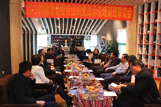 2016年3月25日及3月27日下午,拉薩知名會所企業(yè)座談會及2015西藏非公經(jīng)濟(jì)組織黨員示范培訓(xùn)班聯(lián)誼會先后在西藏阜康(國際)健康體檢中心咖啡廳舉行。拉薩各知名會所企業(yè)代表、2015西藏非公經(jīng)濟(jì)組織黨員示范培訓(xùn)班成員:西藏阜康醫(yī)藥發(fā)展有限公司總經(jīng)理、黨委紀(jì)檢委員陳彬,西藏阜康醫(yī)藥發(fā)展有限公司黨支部青年委員、董秘李霞,西藏雅喜實(shí)業(yè)公司黨支部副書記、董秘雷滿興,拉薩遠(yuǎn)大建材有限公司支部副書記周西平,拉薩市城關(guān)區(qū)億鑫廢舊回收有限公司黨支部書記李曉飛,江蘇商會常務(wù)理事梁鉅松,拉薩市申新商貿(mào)有限公司董事長趙萬才,星宇通訊器材有限公司黨支部書記王金剛,西藏華鈺礦業(yè)集團(tuán)黨委副書記劉志峰,西藏浙江商會黨支部書記陳炬亦,西藏蓋天力機(jī)械有限公司總經(jīng)理王東勝,西藏百益大酒店總經(jīng)理、法人代表曹光亮,拉薩鼎業(yè)制粉有限公司副總經(jīng)理郭倩,西藏泰成餐飲有限公司黨支部負(fù)責(zé)人孫宏霞,西藏易境旅游景觀設(shè)計(jì)有限公司黨支部書記李川及我院扎西頓珠副院長,敖德秀副院長、黨委專職副書記,張治副院長,各醫(yī)院辦公室主任等先后參加了兩次會議。
