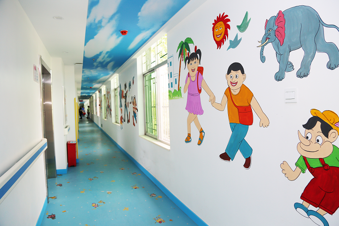 近日,隨著醫(yī)院的改造升級,兒科病房一改往日單調(diào)刻板的面貌,變身童趣十足的游樂園。整個科室以兒童喜愛的鮮亮色彩作為主色調(diào),并增添了許多人性化設計,將原來白色墻面豐富為彩色亮麗、充滿童趣的墻體,走廊處畫上了各類卡通圖案,營造了溫馨可愛的氛圍,小朋友們就診時如同置身于卡通樂園,充分體現(xiàn)了現(xiàn)代化專科醫(yī)院室內(nèi)設計的人文理念。