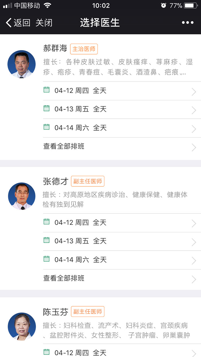 微信就診服務(wù)效果圖: