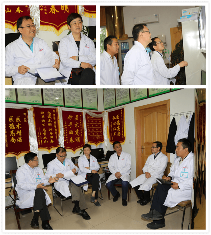 回到消化內(nèi)科醫(yī)生值班室,周平紅教授和阜康醫(yī)院醫(yī)護(hù)人員一起進(jìn)行會(huì)診。周平紅教授認(rèn)真聽取了阜康醫(yī)院消化內(nèi)科醫(yī)生的匯報(bào),仔細(xì)查閱患者的各種檢查資料,對(duì)幾起復(fù)雜病例指明了診治方向。