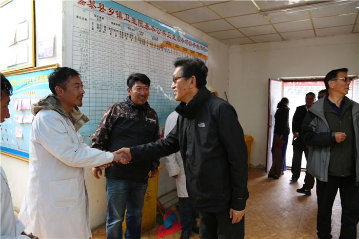 阿沛·晉源主席和施工人員一一握手慰問,囑咐他們在施工過程中一定注意安全!要把衛(wèi)生院建成標桿衛(wèi)生院,造福夏瑪鄉(xiāng)農(nóng)牧民群眾!看完即將竣工的衛(wèi)生院他又來到老舊的衛(wèi)生院看望正在工作的醫(yī)護人員,與醫(yī)護人員和患者親切握手交談,囑咐他們一定多加學(xué)習(xí)和培訓(xùn),用心工作,搬到新的衛(wèi)生院后一定不要辜負阜康全體員工的期望!接著晉源主席也指示阜康要繼續(xù)幫助衛(wèi)生院,切實提高衛(wèi)生院工作人員醫(yī)療水平,將夏瑪鄉(xiāng)衛(wèi)生院打造成全縣乃至全區(qū)的標桿衛(wèi)生院!