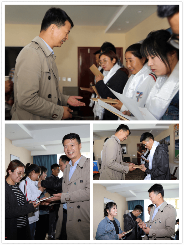 隨后,王斌董事長向7名規(guī)培生門頒發(fā)了《阜康員工守則》,并敬獻(xiàn)了潔白的哈達(dá),佩戴了阜康院徽,他臨別叮囑:“謹(jǐn)記阜康囑托,謹(jǐn)守阜康準(zhǔn)則,不辱阜康之名,為阜康爭榮!希望你們能夠腳踏實(shí)地在華西醫(yī)院和成都市第三人民醫(yī)院帶教老師的指導(dǎo)下完成規(guī)培計劃,并在三年內(nèi)考過執(zhí)業(yè)醫(yī)師資格證和規(guī)范化培訓(xùn)資格證,按時歸來服務(wù)阜康、報效西藏!”
