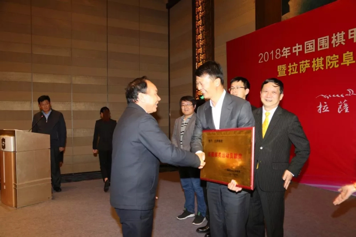 為表彰拉薩棋院阜康職業(yè)圍棋隊對西藏體育圍棋事業(yè)做出的巨大貢獻,西藏自治區(qū)黨委副書記、主席齊扎拉代表黨委政府向拉薩棋院阜康職業(yè)圍棋隊領(lǐng)隊王斌頒發(fā)了“西藏自治區(qū)體育棋類貢獻獎”!肯定了阜康四年來支持拉薩棋院積極參與全國各項賽事并為圍棋在西藏的普及發(fā)展所做出的諸多工作。勉勵王斌繼續(xù)支持西藏的圍棋發(fā)展,一步一個腳印地做好醫(yī)療衛(wèi)生和體育文化工作。