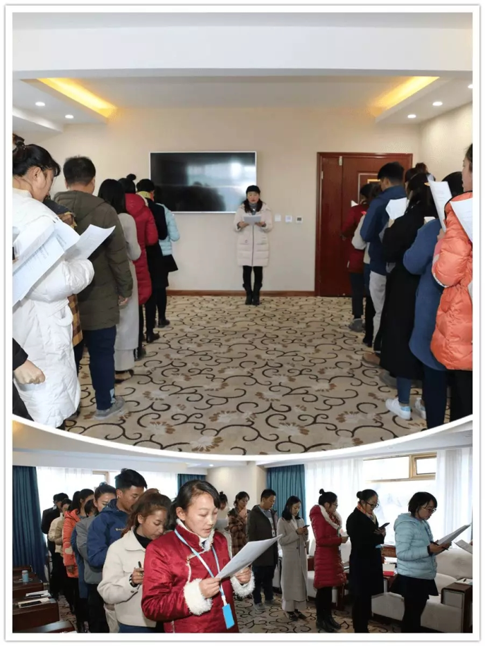 行政后勤全體工作人員共同誦讀新版的阜康企業(yè)文化