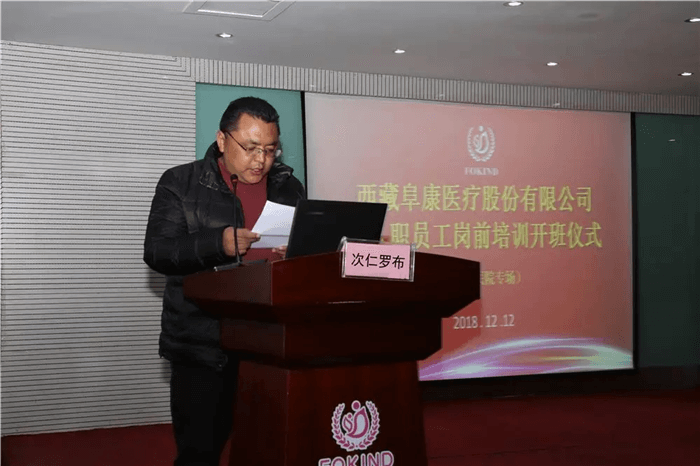 西藏玉拓醫(yī)療健康養(yǎng)老產(chǎn)業(yè)有限責(zé)任公司總經(jīng)理次仁羅布為本次培訓(xùn)活動(dòng)致辭:“西藏阜康康復(fù)醫(yī)院是一家康復(fù)??漆t(yī)院,也是‘玉拓醫(yī)療’和‘阜康醫(yī)療’聯(lián)合創(chuàng)辦的醫(yī)院,我相信我們兩家公司一定會(huì)精誠合作,將康復(fù)醫(yī)院發(fā)展成為技術(shù)一流、服務(wù)一流的現(xiàn)代化醫(yī)院!”