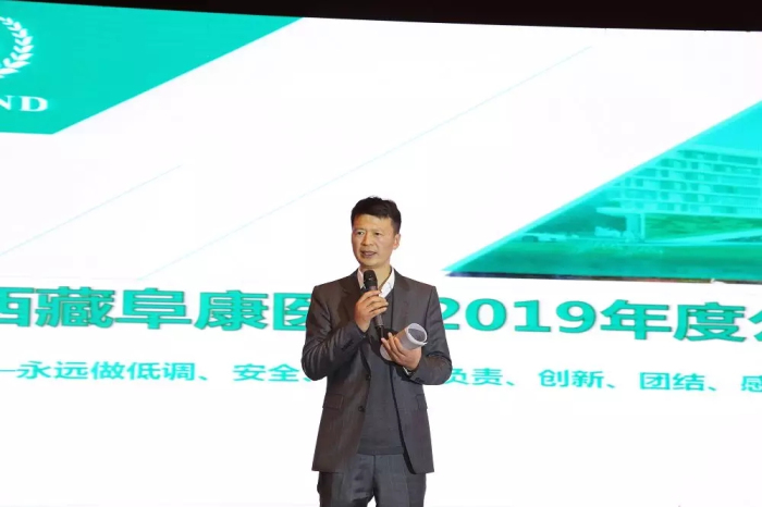 王斌董事長首先感謝各位來賓的支持以及全體員工在過去一年里辛勤付出。阜康醫(yī)院經(jīng)過二十年的發(fā)展,由當(dāng)初開業(yè)時的87人、70張床位的一家小醫(yī)院,發(fā)展到現(xiàn)在擁有1117名員工,520張開放床位的大型綜合醫(yī)院?,F(xiàn)如今阜康已是一家集藥品連鎖、醫(yī)療、教學(xué)、科研、預(yù)防、康復(fù)、保健為一體的醫(yī)藥集團(tuán)公司。在中央加快西藏發(fā)展、促進(jìn)西藏穩(wěn)定的一系列特殊政策的扶持下,經(jīng)歷了從無到有,從小到大,從弱到強(qiáng)的發(fā)展歷程,為建設(shè)健康西藏作出了應(yīng)有貢獻(xiàn)。阜康整體質(zhì)量飛躍離不開區(qū)市兩級黨委政府、主管部門及社會友人的關(guān)心和支持,更離不開各位阜康同仁的不懈努力。