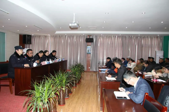 城關(guān)區(qū)公安局執(zhí)法監(jiān)督大隊(duì)大隊(duì)長張?zhí)裣虼蠹移占傲司S護(hù)社會(huì)穩(wěn)定對(duì)于每個(gè)社會(huì)組織以及每個(gè)人的重要意義,希望大家充分理解公安民警的工作,并主動(dòng)配合公安機(jī)關(guān)的各項(xiàng)維穩(wěn)措施;張?zhí)裢瑫r(shí)傳達(dá)了“掃黑除惡、打非治亂”行動(dòng)在我區(qū)的推進(jìn)情況,希望大家從自我做起,人人為“掃黑除惡、打非治亂”行動(dòng)做貢獻(xiàn),以更好地保障自身人身和財(cái)產(chǎn)安全。