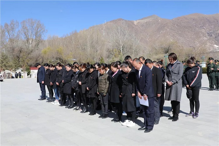儀式結(jié)束以后,全體黨員整齊肅穆地走過紀念碑,懷著對革命先烈的崇敬之情瞻仰了烈士陵墓,同時聽取引導(dǎo)人員關(guān)于革命烈士的事跡介紹。在烈士英名墻下,大家仔細瀏覽烈士的名字;在領(lǐng)導(dǎo)干部的楷??追鄙镜哪贡埃蠹疑钌罹瞎磉_對革命先烈的崇敬與追思;面對一排排長眠的革命烈士,大家深切感受黨的事業(yè)所經(jīng)歷的艱辛與付出的巨大犧牲,深深思考作為一名新時代的中國共產(chǎn)黨員應(yīng)該如何肩負起歷史賦予的使命,在黨中央和區(qū)黨委的堅強領(lǐng)導(dǎo)下,為西藏的穩(wěn)定發(fā)展、為中華民族的偉大復(fù)興貢獻自己的力量,堅決做一名無愧于黨和人民、無愧于時代的合格共產(chǎn)黨員。