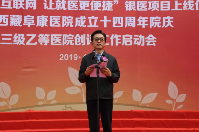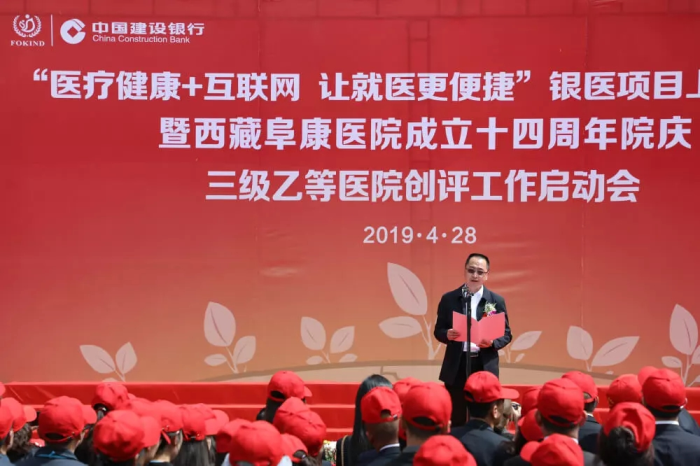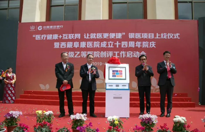 春日的圣城拉薩陽(yáng)光明媚,生機(jī)盎然。2019年4月28日,注定是一個(gè)不平凡的日子!下午15時(shí),來(lái)自自治區(qū)政府部門、各大金融機(jī)構(gòu)、科技教育單位的12位嘉賓和阜康醫(yī)院的廣大醫(yī)務(wù)人員匯聚一堂,共同見(jiàn)證建設(shè)銀行西藏分行、西藏阜康醫(yī)院“醫(yī)療健康+互聯(lián)網(wǎng),讓就醫(yī)更健康”銀醫(yī)項(xiàng)目上線暨阜康醫(yī)院成立十四周年院慶三級(jí)乙等醫(yī)院創(chuàng)評(píng)工作正式啟動(dòng),標(biāo)志著在雪域高原上成功走過(guò)十四年光輝歷程的阜康醫(yī)院,正在一個(gè)全新的起點(diǎn)上承載著“健康西藏”的光榮使命再次揚(yáng)帆遠(yuǎn)航、整裝出發(fā)!