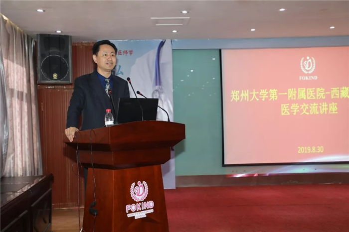 西藏阜康醫(yī)療股份有限公司寧曉總裁致辭時表示,在藏族人民的傳統(tǒng)節(jié)日雪頓節(jié)期間,我們迎來了中國最大的醫(yī)院鄭州大學(xué)第一附屬醫(yī)院的五位專家,在此我代表西藏阜康醫(yī)療股份有限公司、西藏阜康醫(yī)院對專家組的到來表示熱烈歡迎!對專家們的精彩演講表示感謝!一個企業(yè)持久的競爭優(yōu)勢就在于擁有比對手更快的學(xué)習(xí)能力,未來成功的企業(yè)必定會是一個學(xué)習(xí)型的組織。西藏阜康醫(yī)院已經(jīng)成為一家三級綜合醫(yī)院,醫(yī)院和鄭州大學(xué)第一附屬醫(yī)院建立起了良好的合作關(guān)系,公司支持廣大醫(yī)務(wù)人員去鄭州大學(xué)第一附屬醫(yī)院進修學(xué)習(xí),鼓勵年輕醫(yī)務(wù)工作者積極報考鄭州大學(xué)第一附屬醫(yī)院各位老師的研究生,費用方面公司給予解決。阜康未來的路還很長,讓我們一起攜手、共同努力,為醫(yī)院的長遠發(fā)展建立起一支強大的后備人才隊伍。