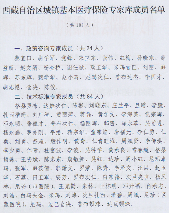 附件:西藏自治區(qū)城鎮(zhèn)基本醫(yī)療保險(xiǎn)庫(kù)專(zhuān)家名單