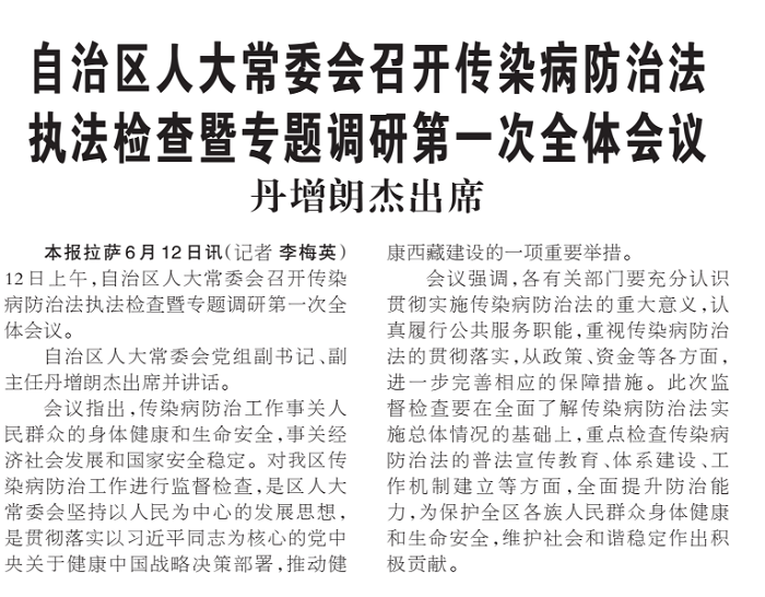 - · 自治區(qū)人大常委會召開傳染病防治法 執(zhí)法檢查暨專題調(diào)研第一次全體會議——丹增朗杰出席