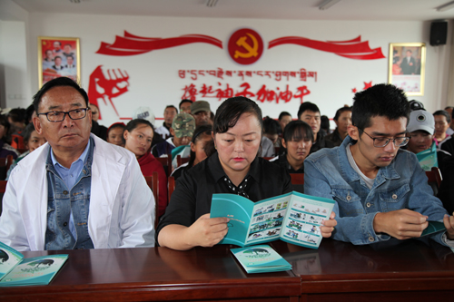 圖為自治區(qū)殘聯(lián)黨組成員、副理事長(zhǎng)拉姆卓瑪(中)參加“殘疾預(yù)防進(jìn)社區(qū)”活動(dòng)