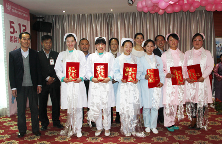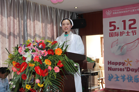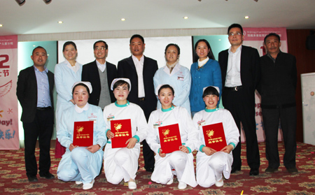下午是“5.12國(guó)際護(hù)士節(jié)”慶祝活動(dòng),同去年一樣例行勤儉節(jié)約只是搞了一個(gè)簡(jiǎn)單地茶話會(huì),但是滿桌的水果,粉紅色的節(jié)日慰問語(yǔ),美麗的鮮花都是院領(lǐng)導(dǎo)對(duì)護(hù)士姐妹們最由衷的節(jié)日慰問。本次慶?;顒?dòng)劉瀟瀟總經(jīng)理、陳彬總經(jīng)理、張德才院長(zhǎng)、敖德秀副院長(zhǎng)、劉連福副院長(zhǎng)、李君副院長(zhǎng)、張治副院長(zhǎng)應(yīng)邀出席,他們紛紛致辭感謝全院護(hù)士這一年的辛苦工作,并對(duì)她們寄予厚望,希望白衣天使們,銘記“患者需求至上、團(tuán)隊(duì)精誠(chéng)協(xié)作”的院訓(xùn),緊跟時(shí)代步伐,克服護(hù)理工作量大、人員緊張等諸多困難,齊心協(xié)力,努力工作,再創(chuàng)佳績(jī)。