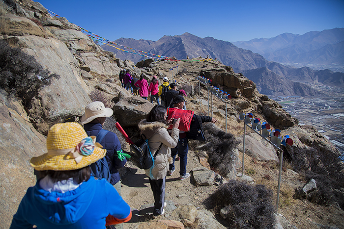 為保證參加活動人員的人身安全,支部對參加人員著裝、隨身攜帶物品等做出了明確規(guī)定,所有人從阜康婦產(chǎn)兒童分院集合統(tǒng)一出發(fā)驅(qū)車前往色拉寺。我們將人員分為三隊,為保證體力給大家發(fā)放了水果、水、巧克力等,同時還給帶隊的小組長分發(fā)了垃圾袋,鑒于西藏脆弱的生態(tài)環(huán)境,為保護大山環(huán)境,我們要求所有人員把爬山過程中產(chǎn)生的垃圾,和以前轉(zhuǎn)山者遺留下的垃圾一并帶走,為環(huán)境保護貢獻自己微小的力量。