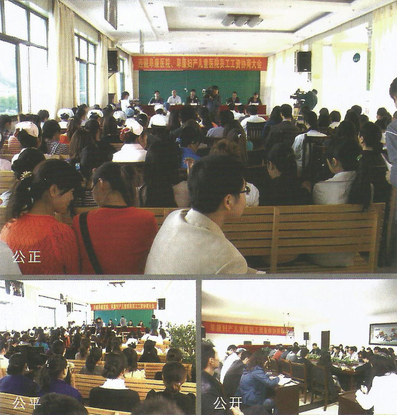 2011年9月10日下午,西藏阜康醫(yī)院、阜康婦產(chǎn)兒童醫(yī)院召開了全院?jiǎn)T工工資協(xié)商大會(huì)。王斌董事長(zhǎng)及醫(yī)院主要領(lǐng)導(dǎo)宣布了工資集體協(xié)商的一致意見。本次會(huì)議就阜康內(nèi)部員工工資分配制度、工資分配形式、工資支付辦法、工資標(biāo)準(zhǔn)等事項(xiàng)進(jìn)行了平等協(xié)商,并達(dá)成了一致意見。