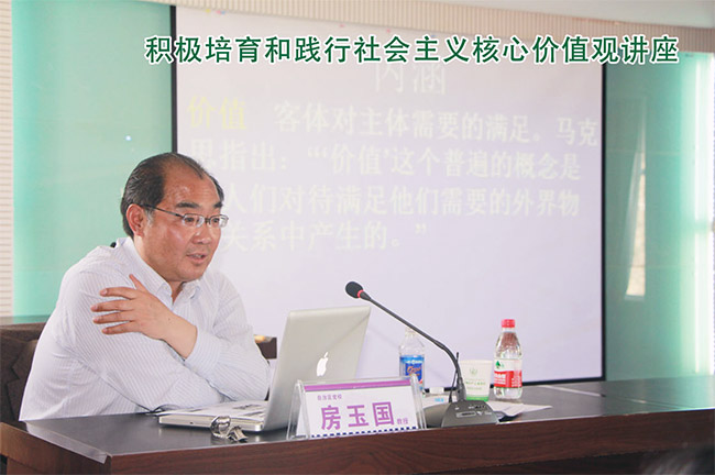 講座通過討論“新世紀(jì)的年輕人最缺乏的是什么?”相關(guān)內(nèi)容展開。房玉國教授從三個方面對此進行了闡述:第一,培育和踐行社會主義核心價值觀是實現(xiàn)中國夢的助推器。核心價值觀蘊含著人們對世界、人生、社會等一系列重大問題的價值共識,深刻影響著每個社會成員的思想觀念、思維方式、行為規(guī)范,是人們思想上精神上的靈魂旗幟。第二,培育和踐行社會主義核心價值觀是鞏固主流意識形態(tài)地位的導(dǎo)航燈。主流意識形態(tài)在各種意識形態(tài)中有明顯的導(dǎo)向作用,能統(tǒng)領(lǐng)全體社會成員的價值追求和理想信念。第三,培育和踐行社會主義核心價值觀是集聚社會正能量的粘合劑。培育和踐行社會主義核心價值觀是引導(dǎo)全社會在思想上共同進步、端正社會風(fēng)氣的基本途徑。