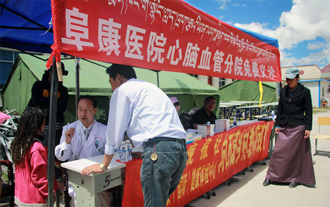 7月9日早上9點(diǎn),由西藏阜康(國(guó)際)健康體檢中心、西藏阜康醫(yī)院心腦血管分院義診隊(duì)的醫(yī)護(hù)人員帶上價(jià)值3000余元的藥品,從拉薩啟程,分別來(lái)到位于當(dāng)雄縣最偏遠(yuǎn)的烏瑪鄉(xiāng)第二中心小學(xué),并于第二天趕到位于當(dāng)雄縣海拔最高的納木湖鄉(xiāng)中心小學(xué),為這兩所學(xué)校的師生進(jìn)行免費(fèi)體檢。