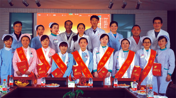 接下來對在這一年里表現(xiàn)優(yōu)秀的7名護(hù)士進(jìn)行了表彰,她們分別是李尚春、次仁、李敏、徐秀娟、羅國波、曹紅、龍芬。院領(lǐng)導(dǎo)為他們頒發(fā)了榮譽(yù)證書、獎(jiǎng)金,給他們敬獻(xiàn)哈達(dá)并合影留念。獲獎(jiǎng)護(hù)士代表李尚春、羅國波、曹紅分別進(jìn)行了發(fā)言。最后由李君副院長對大會作總結(jié),在肯定我們工作的同時(shí)也提出了新的要求。希望在未來的時(shí)間里我們?nèi)横t(yī)護(hù)人員以更高層次的服務(wù)水平嬴得患者的滿意。為醫(yī)院改革發(fā)展作出更大的貢獻(xiàn)。