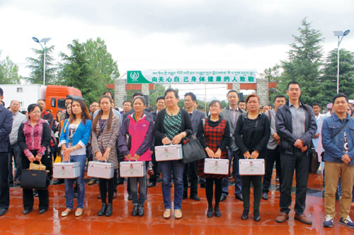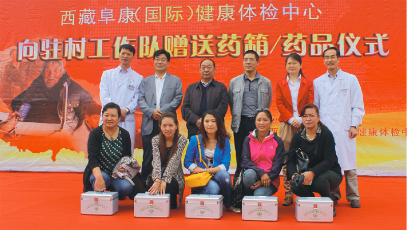 西藏阜康(國際)健康體檢中心王斌董事長首先向為促進(jìn)西藏和諧發(fā)展長期駐村(居)的工作人員表示崇高的敬意!據(jù)了解,本次為拉薩市267個駐村(居)工作隊贈送的小藥箱中配備了急救類、解熱鎮(zhèn)痛類、治感冒類、止咳化痰類、抗菌藥物類等14類共31種常用藥品及電子血壓計,總價值約20萬元。王斌董事長在贈送儀式上講到“本次開展西藏阜康(國際)健康體檢中心向駐村(居)工作隊贈送藥箱活動,旨在為民解困難,為民辦實事,為我們駐村(居)工作人員健康做好堅實的后盾,促進(jìn)西藏穩(wěn)定和諧發(fā)展。”王斌董事長希望能給駐村(居)工作人員帶來健康,同時也希望能在黨的群眾路線教育實踐活動中獻(xiàn)出民營企業(yè)的一份綿薄之力。