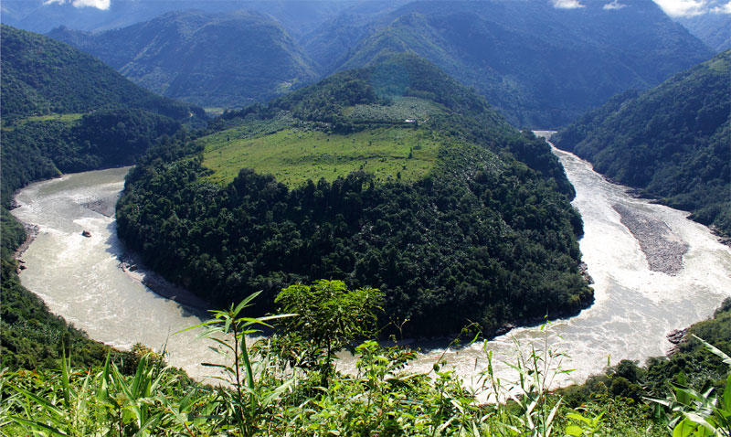 安頓好后,C陪我繞著村子走了走,一直走到一條滾滾蕩蕩的大江邊,終于受不住那股強(qiáng)流的寒風(fēng)才往回走?;氐叫:螅Y(jié)識(shí)了另一個(gè)走墨脫的單車旅行者,憨態(tài)可掬,被我稱作傻大個(gè),這樣我們就湊上了一個(gè)墨脫之行的四人小隊(duì)伍。
