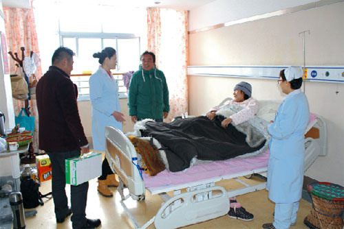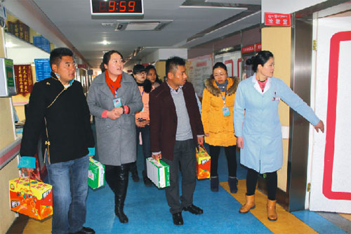 2015年2月19號(hào),西藏阜康醫(yī)院、阜康醫(yī)院婦產(chǎn)兒童分院、阜康醫(yī)院心腦血管分院及阜康(國(guó)際)健康體檢中心在院領(lǐng)導(dǎo)的帶領(lǐng)下,去慰問不能出院和家人團(tuán)聚的患者。醫(yī)院為所有住院患者送上了一份新鮮的水果禮盒及一箱純牛奶。