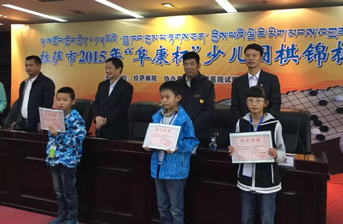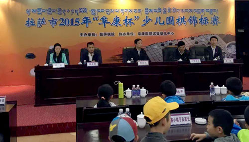 2015年10月6日上年,拉薩市2015年“阜康杯”少兒圍棋錦標賽開幕式于拉薩棋院正式舉行。出席本會議的領(lǐng)導(dǎo)及嘉賓有區(qū)黨委常委、拉薩市委書記齊扎拉,國手九段、山東圍棋隊總教練、拉薩棋院名譽院長、名譽總教練曹大元,拉薩市政府副市長計明南加,中央電視臺圍棋欄目主持人、天元圍棋頻道主持人、拉薩市棋院教練陳盈,西藏自治區(qū)體育局群體處處長姚永剛,以及拉薩棋院院長、西藏阜康醫(yī)藥發(fā)展有限公司董事長王斌。