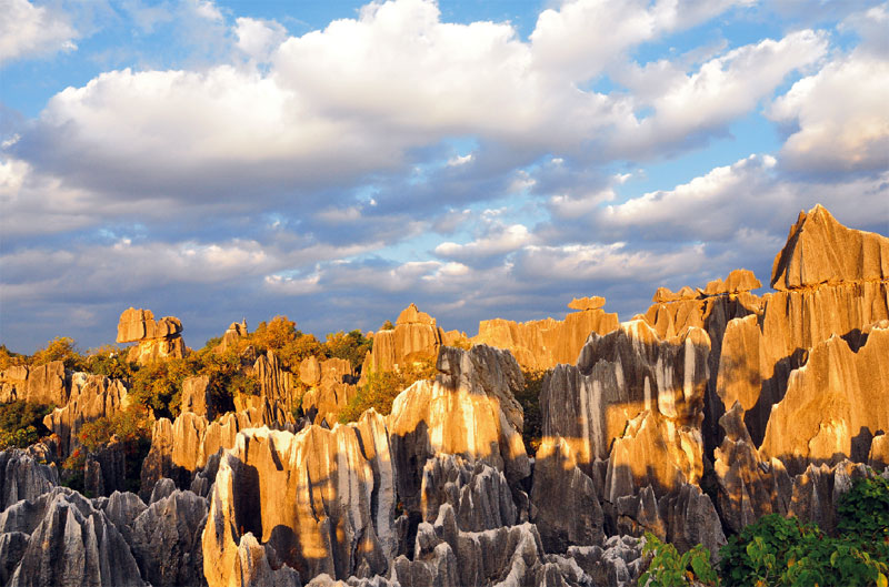 石林是最后一站(赫然發(fā)現(xiàn)小時候大爸煙盒上的畫兒就是石林)。大自然鬼斧神工,造化神秀,參天的巨石中開辟出僅一人的路來,一片石頭形成了一方小小的世界,這里是石頭的王國。石林的石頭據(jù)說和周圍地質(zhì)都不同,也許是天外來石?悄悄地撿了一小塊帶回家。在石林前穿著少數(shù)民族服裝來了個全家福。