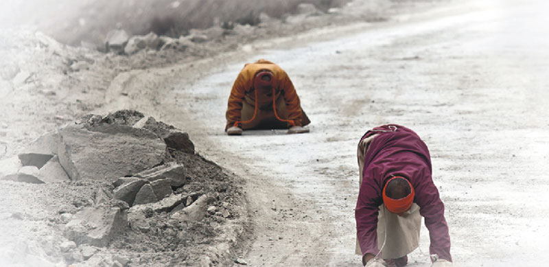 這是快樂美好的七個(gè)月,這七個(gè)月我們度過了拉薩舒適的夏季、絢麗的秋天、干燥而陽光燦爛的冬季,領(lǐng)略了雪域高原的大美風(fēng)光和藏區(qū)神圣的宗教人文景觀。五彩的經(jīng)幡在湛藍(lán)的天空下飄揚(yáng)、清澈見底的高山湖泊在明媚的陽光下泛著七彩的波光,高聳入云的雪山讓人仰望;喇嘛紅衣、匍匐在朝圣路上的信徒,在西藏這片熱土上屹立著堅(jiān)定的信仰。我不懂他們,我只是靜靜看著他們,在目光相遇的時(shí)候,給一個(gè)微笑,我便得到了發(fā)自心底的快樂、滿足和信任。在他們面前,一切都變得簡單、虔誠、付出也是一種快樂。認(rèn)識(shí)了車隊(duì)的巴次,知道了巴次的一些故事,留心著他的言行,我知道了一個(gè)普普通通的藏族青年,有著佛一樣的慈悲心,他就那樣付出著、快樂著……我被感動(dòng)著,感染著。