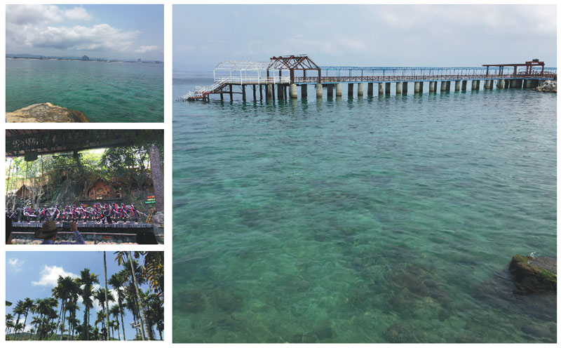 坐上機(jī)場(chǎng)大巴,車?yán)锪硗獾囊粚?duì)小情侶建議我們跟他們一起,于是到了大東海落腳,住在一個(gè)海邊客棧,老板告訴我們說是海景房,由于到的太晚,除了能聽到遠(yuǎn)處漁船的轟鳴什么也看不見。趕路太累,簡(jiǎn)單地收拾了行李睡覺。第二天一大早被熱醒,結(jié)果才發(fā)現(xiàn),海南的蚊子太熱情,我們兩個(gè)人身上都不同程度地被蚊子給臨幸了。不過旅行的好心情不會(huì)被蚊子給攪擾到,抹上防曬霜、戴好帽子……做好一切防護(hù)措施叫上隔壁的小情侶就出發(fā)了。