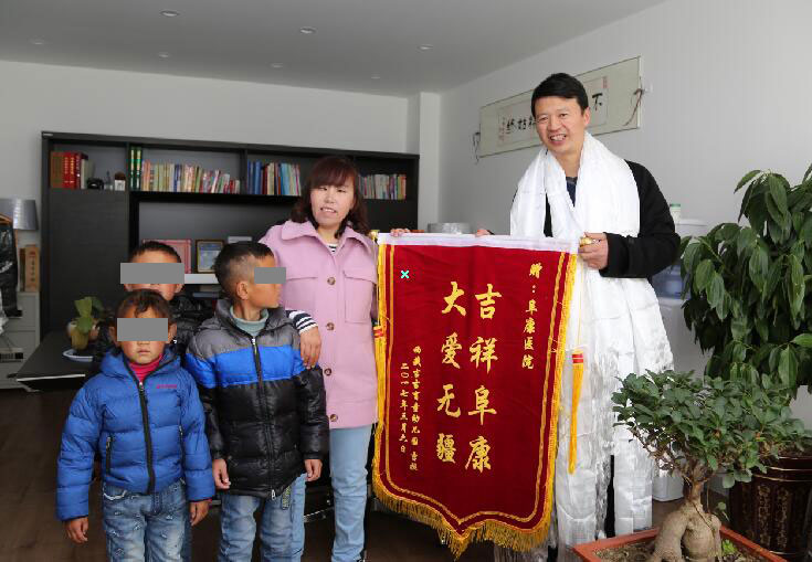 2016年,阜康醫(yī)院與吉吉盲童幼兒園建立幫扶關(guān)系,幫扶對象無償提供醫(yī)療救治,為該園在醫(yī)院開展綠色就醫(yī)通道,并捐助1萬元慰問金。為了表達(dá)對王斌董事長的感激之情,2017年3月10日,在吉拉園長的帶領(lǐng)下,幼兒園小朋友來到醫(yī)院為王斌董事長獻(xiàn)上哈達(dá),并送上錦旗“吉祥阜康 大愛無疆”。