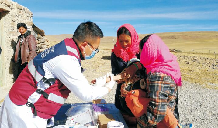 索南,革吉鎮(zhèn)衛(wèi)生院院長,全科醫(yī)生,能接生孩子能看病,包蟲病防治工作任務(wù)繁重,手下的醫(yī)務(wù)人員抽不開身,他親自帶隊(duì)分離標(biāo)本、全血離心,兢兢業(yè)業(yè),工作起來一坐就是一整天。牧區(qū)篩查他帶領(lǐng)團(tuán)隊(duì)卷上鋪蓋帶上方便面一走就是一兩個星期,家不要了,娃不要了,路途遙遠(yuǎn),崎嶇顛簸,腰也不要了。